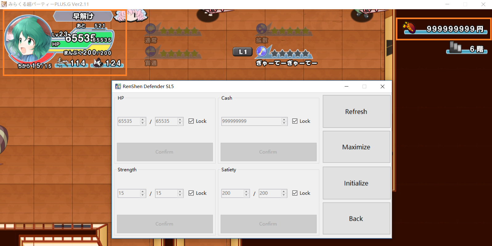 The patch also includes modifications for HP, hunger, strength, and money, along with a locking feature—please use these functions with caution.