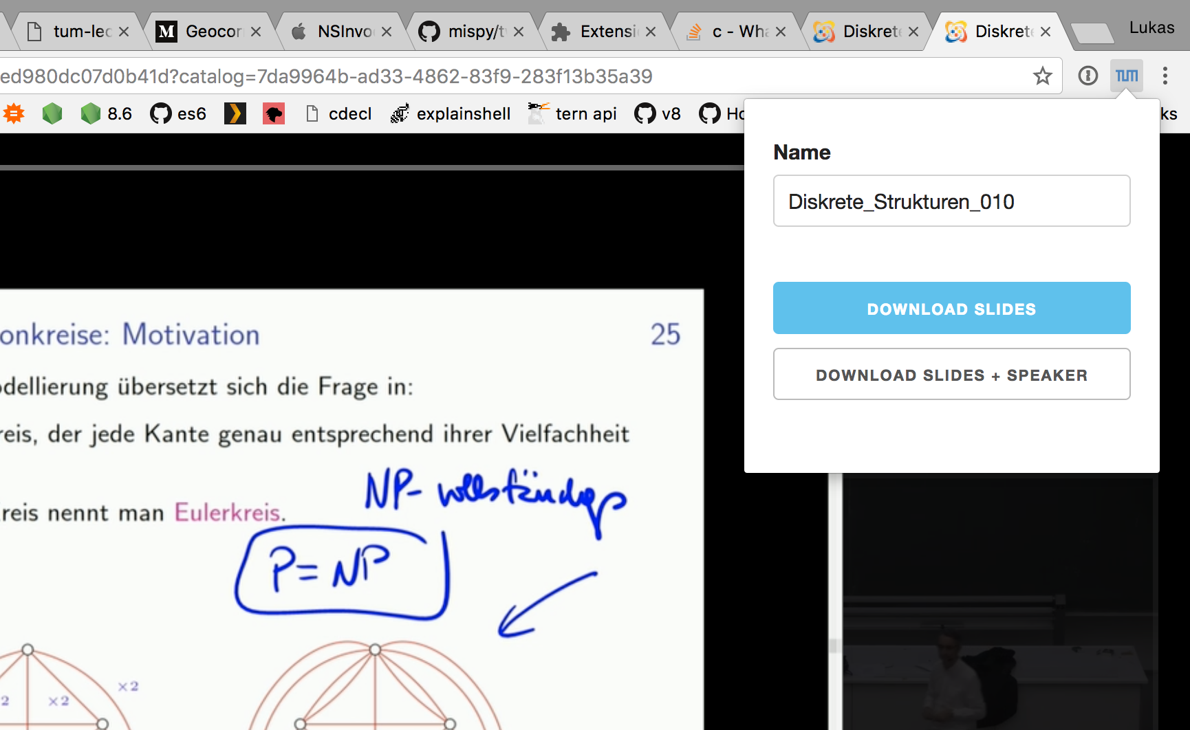If you prefix the lecture name with an exclamation mark (!), the extension will download these slide images.