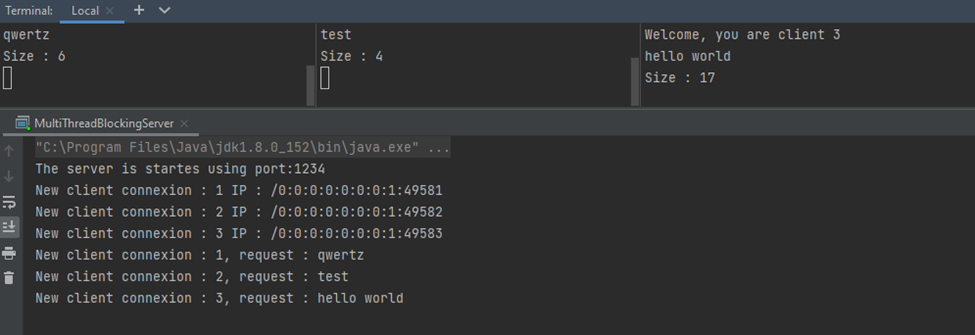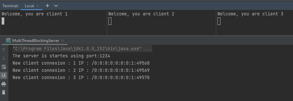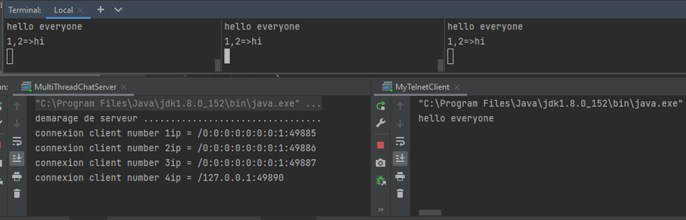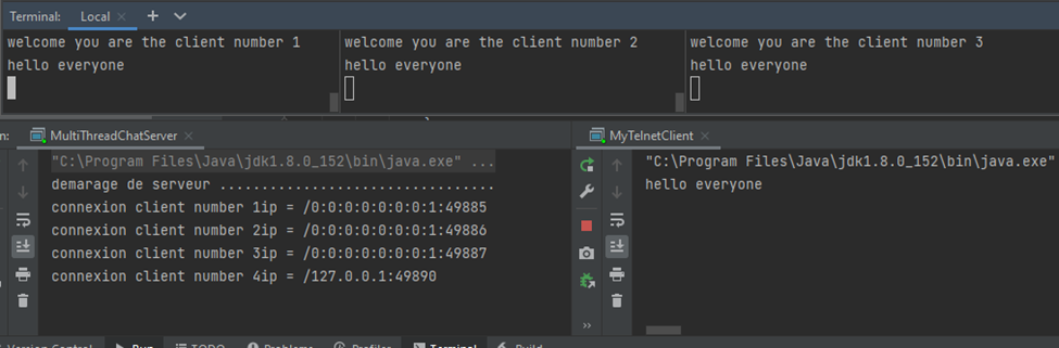 La connexion des clients telnet à un serveur de Multi Thread Blocking