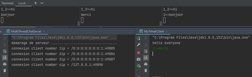 MyTelnetClient (client4) envoyer merci au client 2: