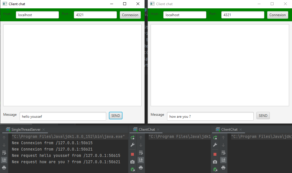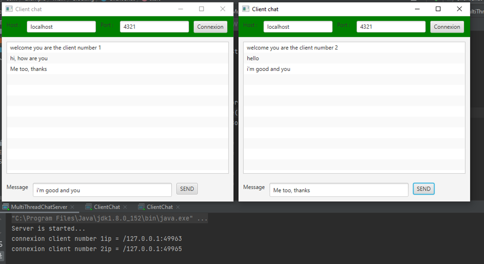 - La communication en utilisant les interfaces graphique JavaFX: