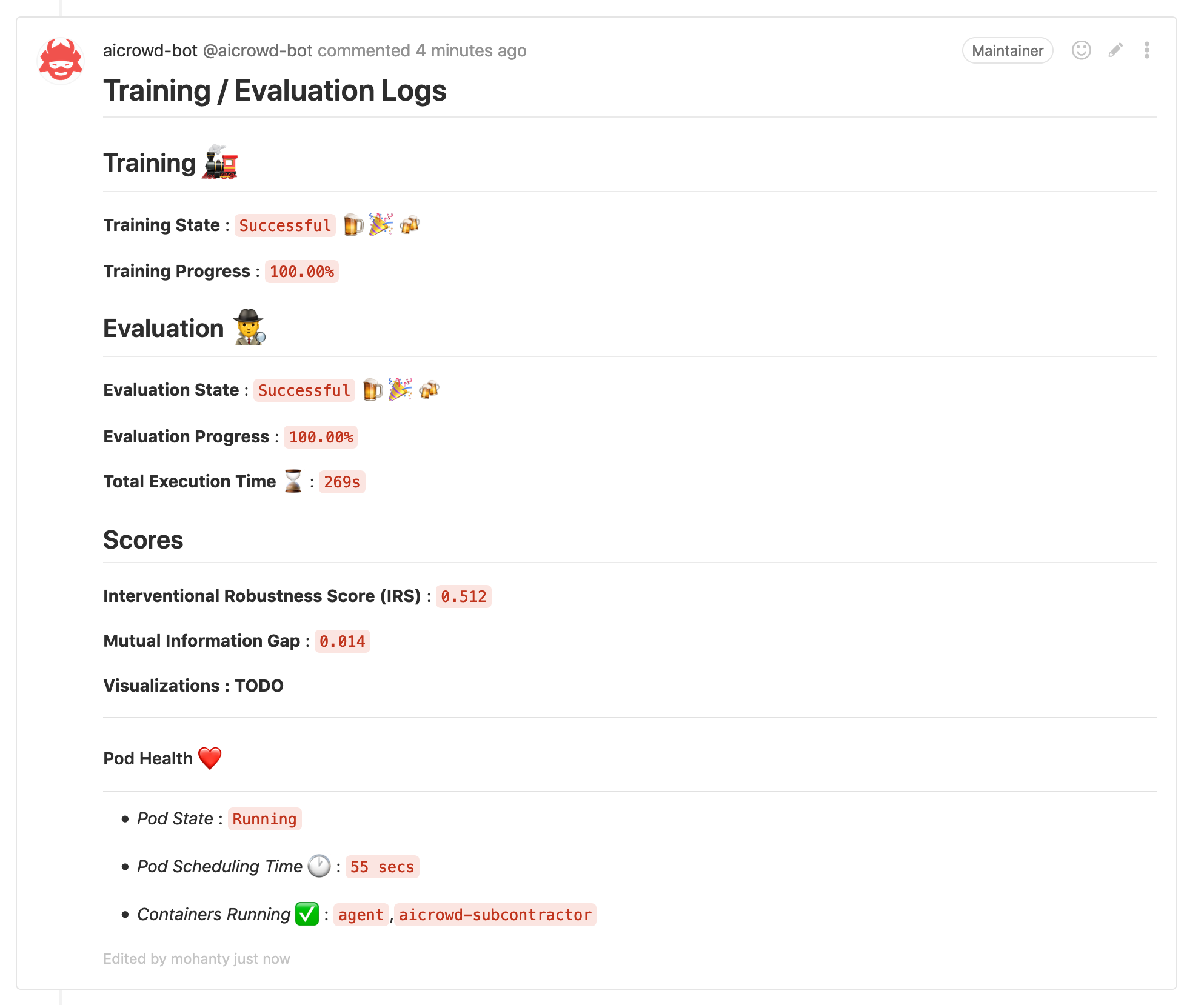 Then you can create a submission by making a tag push to your repository on https://gitlab.aicrowd.com/.