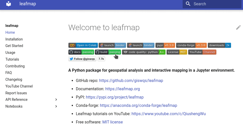 - Conda-forge: https://anaconda.org/conda-forge/leafmap