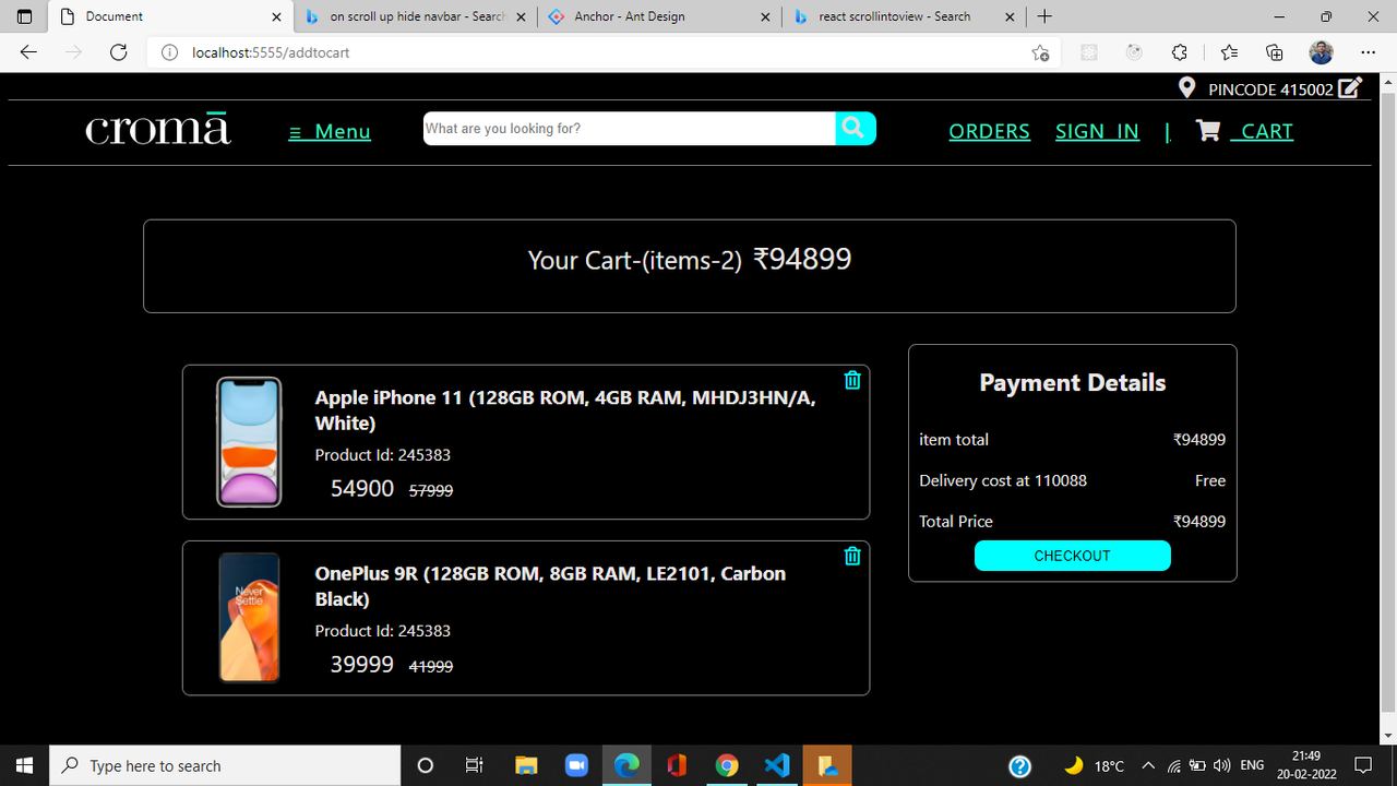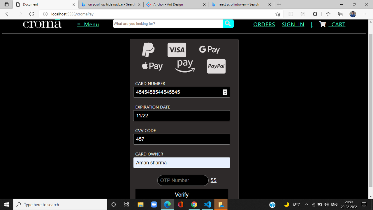 Working on the backend part of the web-site. Getting all the data from server,mongoDB. sigup, sigin features, OTP verification and searching functionality and hashing the password , creating the token and much more