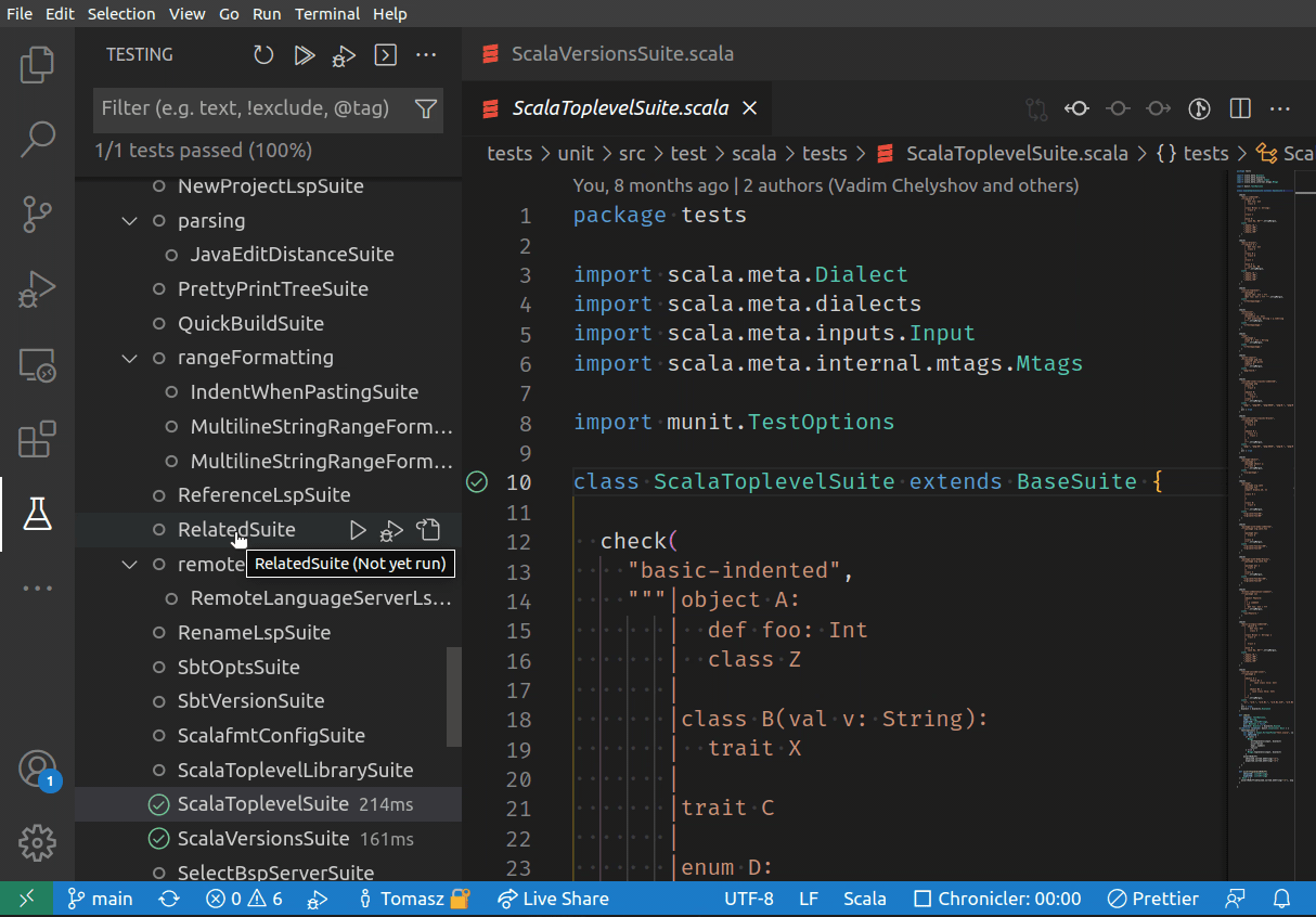 }Metals 0.11.0 implements Visual Studio Code's Testing API.