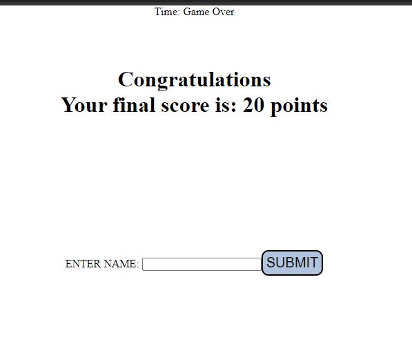 as seen below, under the doQuiz function, when everything has been answered, it would prompt the game is over, with the final score. with the textElement.textcontent
