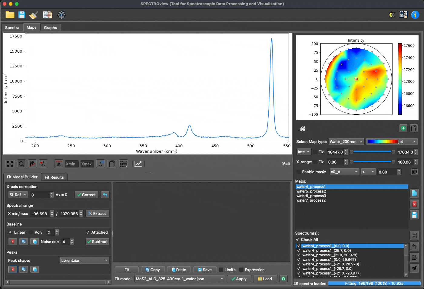 SPECTROview is free, open-source software designed for spectroscopic data analysis. It supports a wide range of data types, including discrete spectra and hyperspectral data (such as 2D maps and wafer maps).