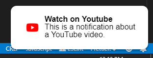 To add images, we will load them in base64 encoding. Using relative/absolute paths will most likely not work. Here's an example of a YouTube-styled notification: