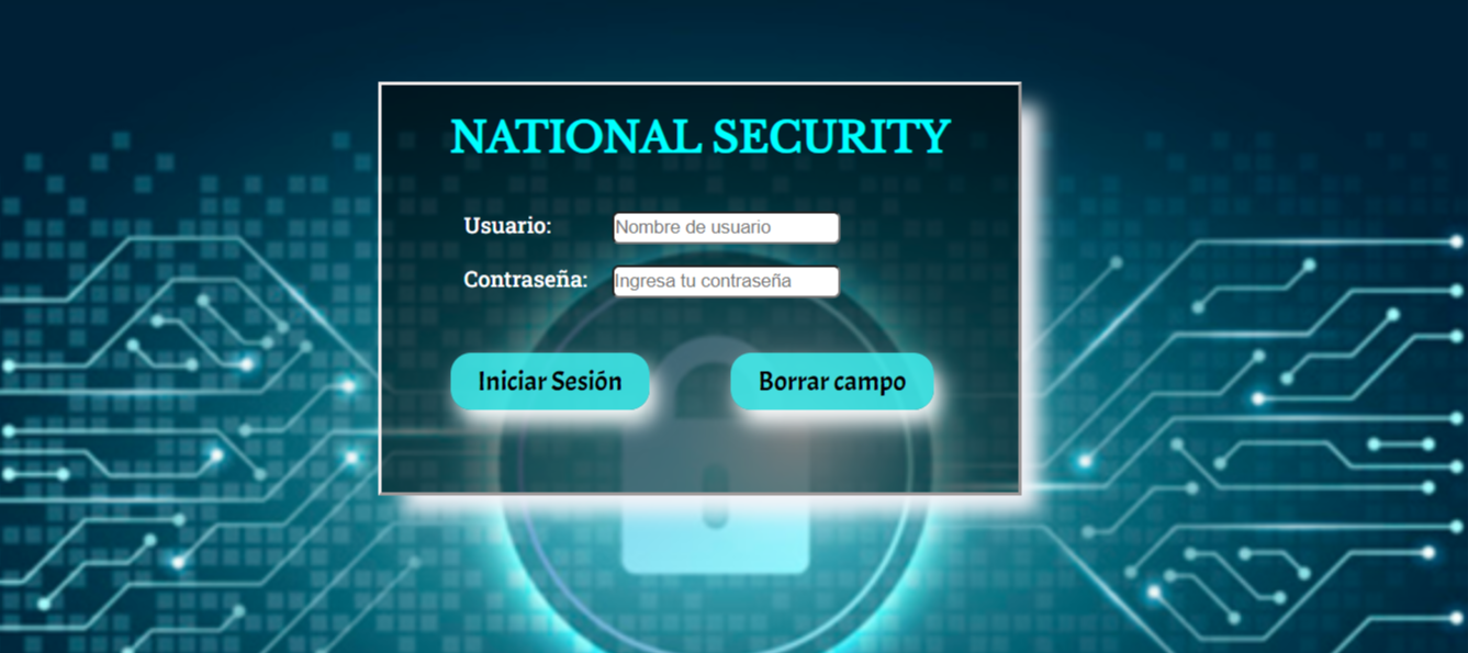 National Security es un software de Encriptación dirigido a empresas o instituciones, donde se requiera mantener una estrategia de seguridad para prevención de actos delictivos; Gracias a National Security los integrantes de estas empresas o instituciones podrán comunicar sus objetivos, rutas de vigilancia, horarios de cambio de guardia, y todo lo relacionado con mantener la seguridad y la protección de los trabajadores y de sus instalaciones; Y de esta manera los integrantes del grupo de seguridad ingresan con usuario y contraseña para cifrar o descifrar lo antes pactado.