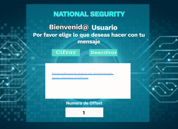 Se debe tomar en cuenta, que National Security trabaja con el alfabeto inglés, por tanto, a pesar de que acepta la letra Ñ en el mensaje, ésta no es cifrada, al igual sucede con los signos de interrogación y demás caracteres especiales.