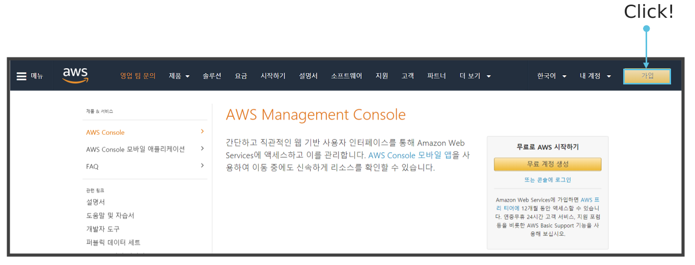 Ctrl 누르고 왼쪽클릭! https://aws.amazon.com/free/