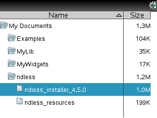 - Transfer ndless_installer_4.2.0_cx.tns or ndless_installer_4.2.0_cascx.tns into a folder named "ndless" (top-level)
