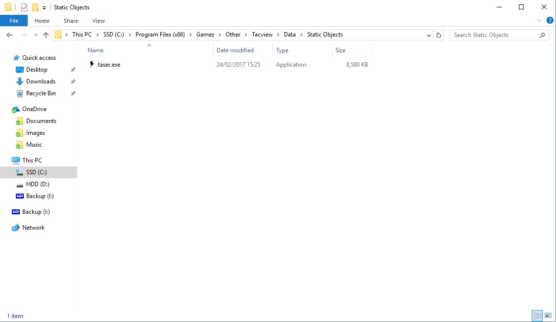 Place taser.exe inside Tacview's Data/Static Objects folder: