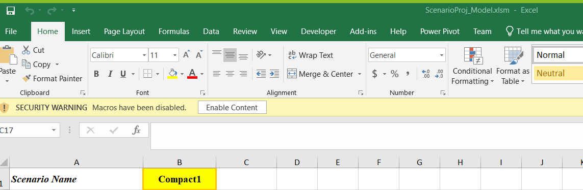 - Click 'Enable Content' at the SECURITY WARNING bar