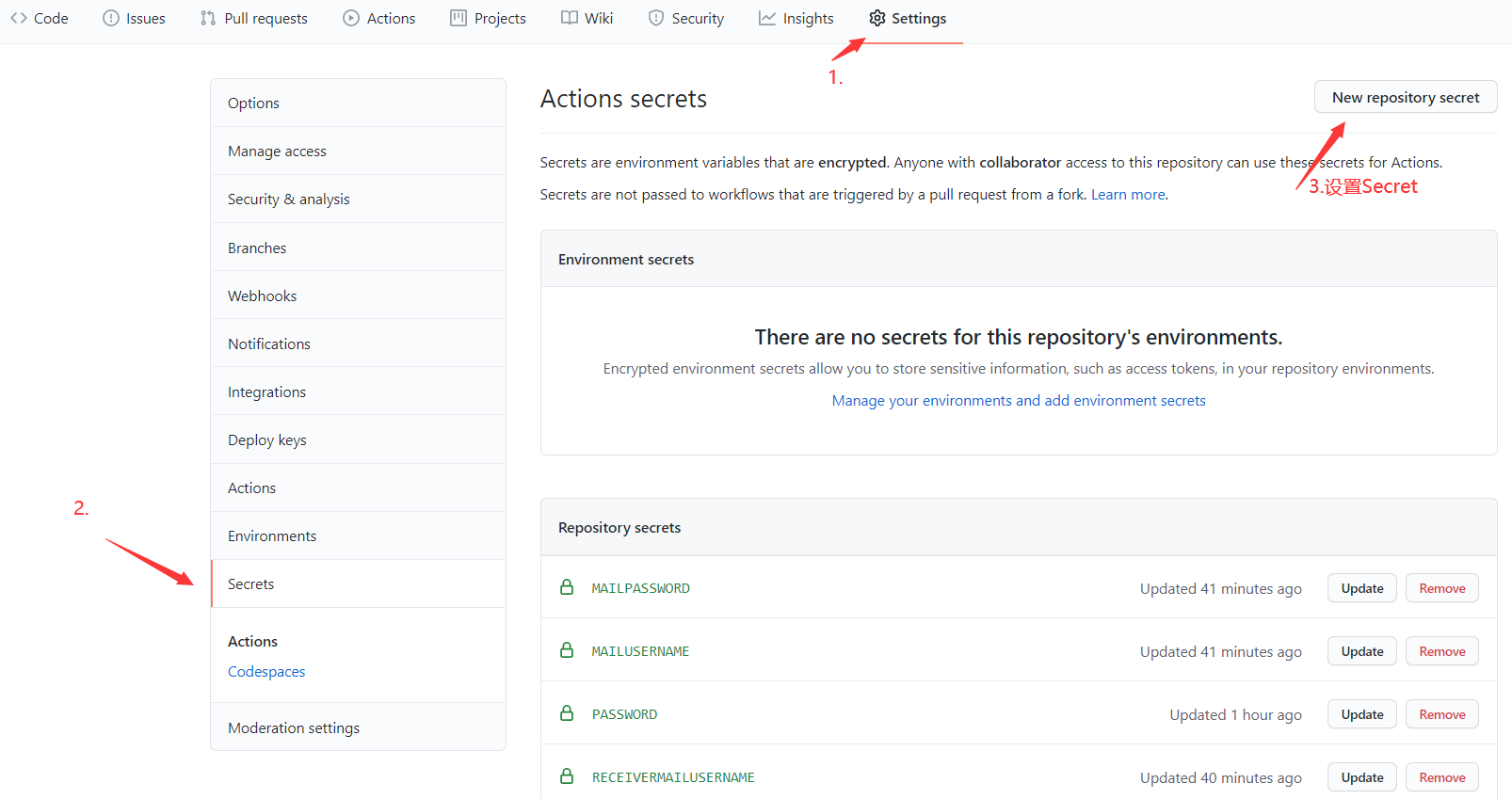 - 配置 Setting-Secrets 添加
