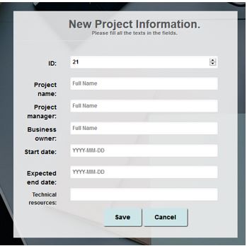 This application allows users to add, view, update, and delete project information, providing a centralized platform for organizing and monitoring company projects.