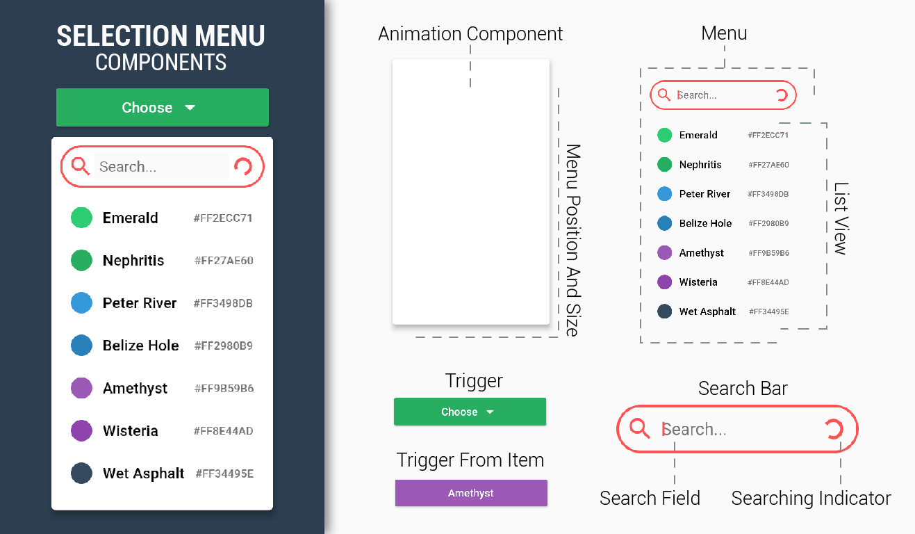 A highly customizable selection/select menu to choose an item from a list, with optional search feature.