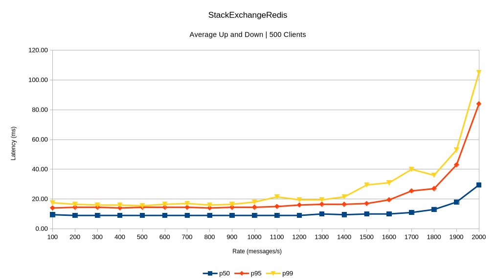 We can see that both backplanes begin to buckle at 1800 messages/second, and PostgreSignalR seems to have higher latency at the 99th percentile than Redis when the message load increases beyond this point. Importantly, performance is relatively identical between the two (with the exception of PostgreSignalR's higher latency at the tail under heavier load) and no messages were lost in either run.
