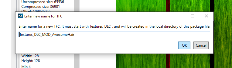You will be asked to name your new TFC file and a suggested name will be provided based on your DLC mod’s name.