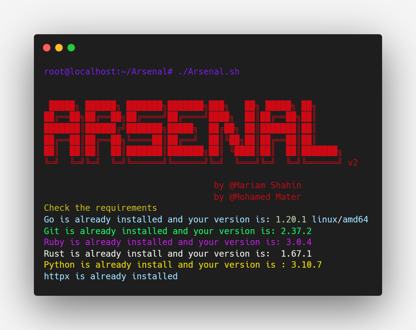 sudo ./Arsenal.sh
