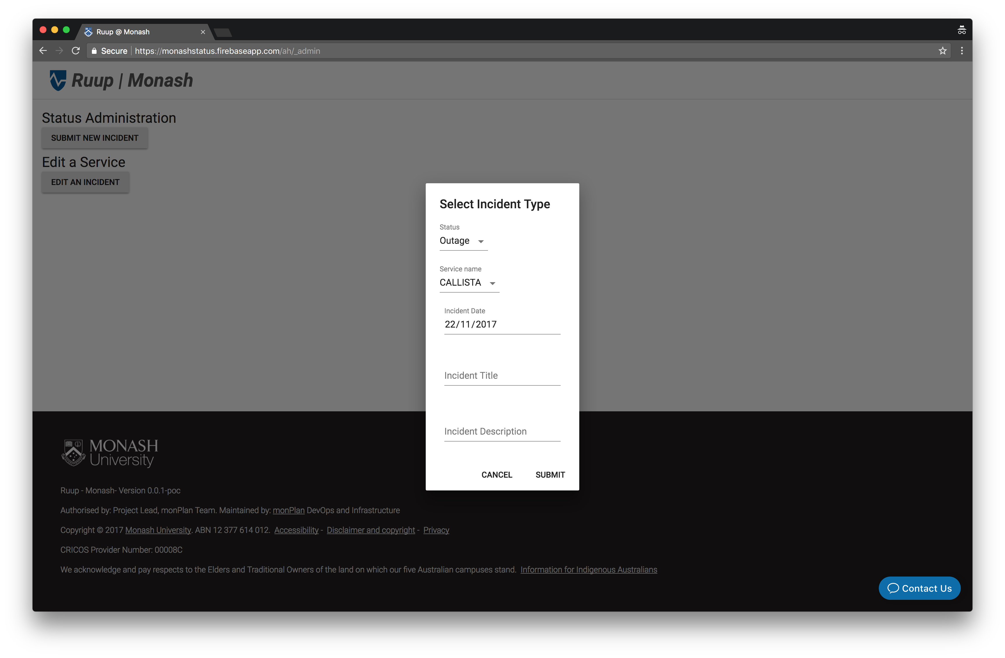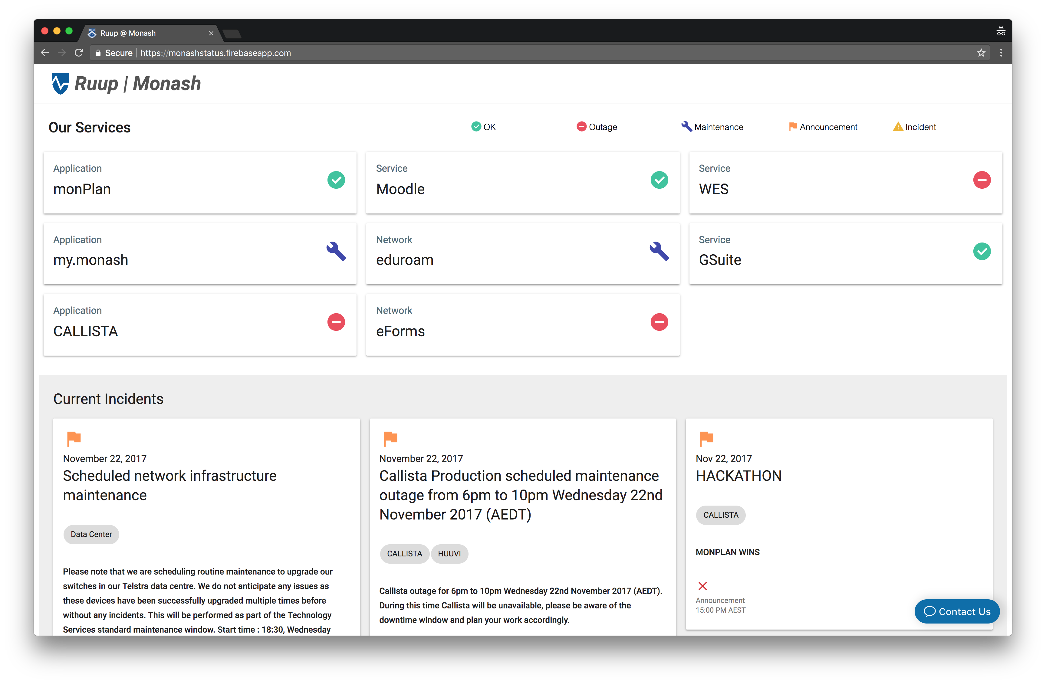 R U Up is a Proof-of-Concept (PoC) aimed at Presenting a Public Status Page to all students and staff about services provided by eSols. This PoC was developed during the first Hump Day Hack.