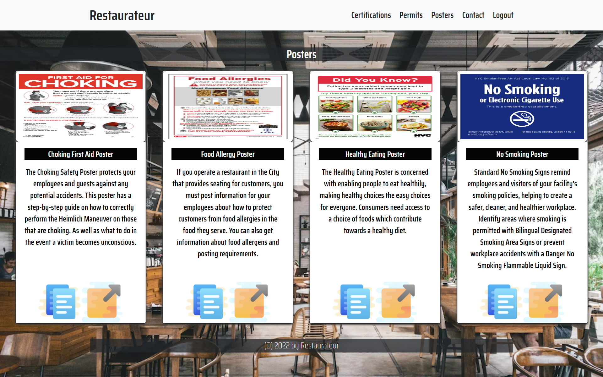 After logging in, our app can help you with best practices and resources! Numerous available resources such as Permits, Certifications, and Posters all at your finger tip, which will help you get your restaurant up and running, and ensure you to pass local DOH inspection. You will be on your way to successfully opening your dream restaurant!