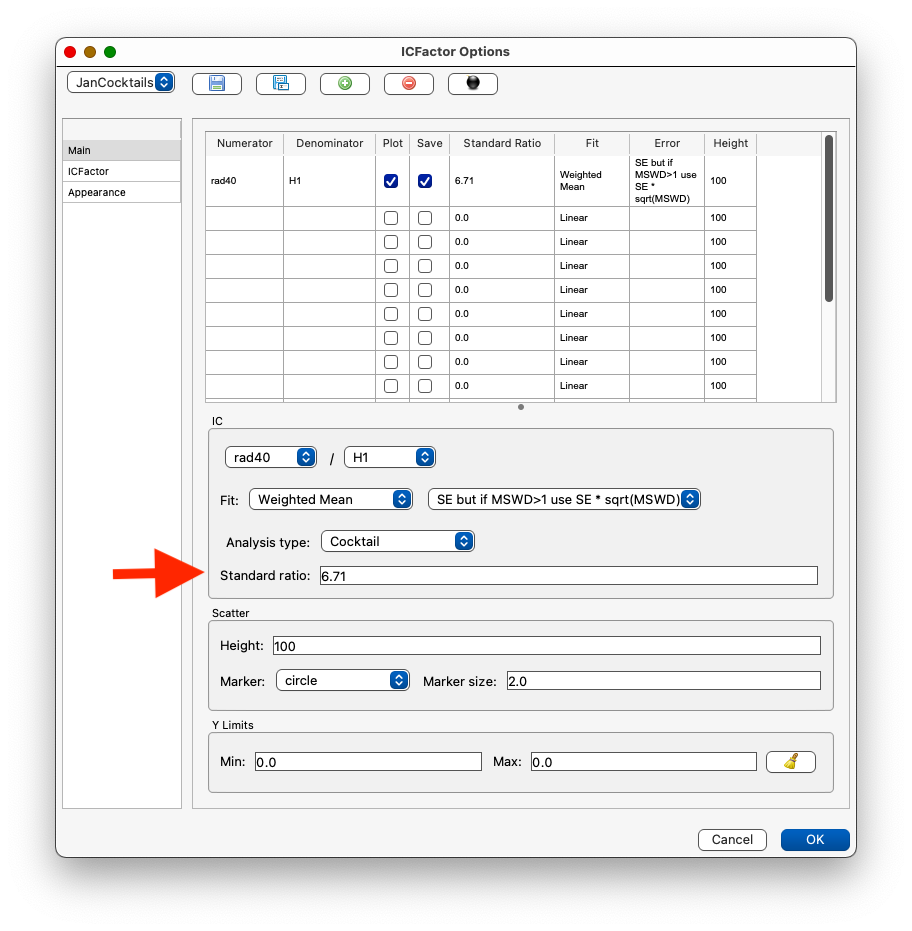 Standard Ratiois setthis is the ratio you are normalizing to. For 40/36 standard ratio= 298.15 and for peak hop 40H1/40AX standard ratio=1