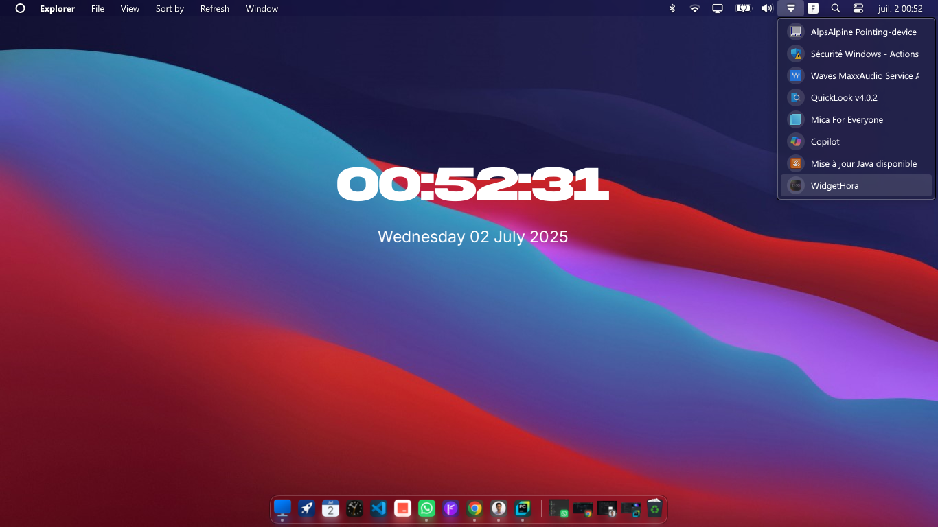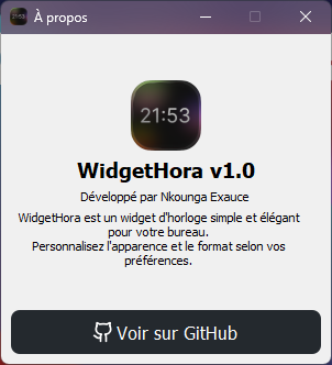 WidgetHora est un widget d’horloge personnalisable pour Windows, développé en Python avec PyQt5.