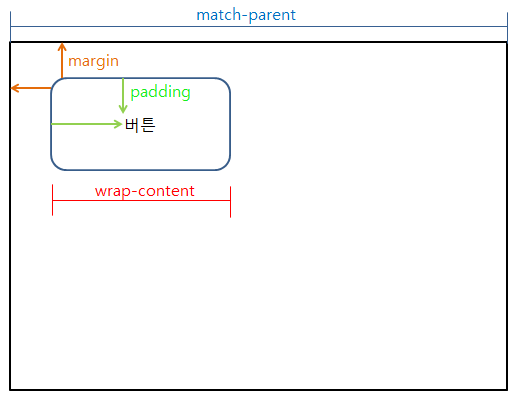 - Match parent은 화면 상에 나타나는 전체(가로,세로) 뷰를 나타낸다.