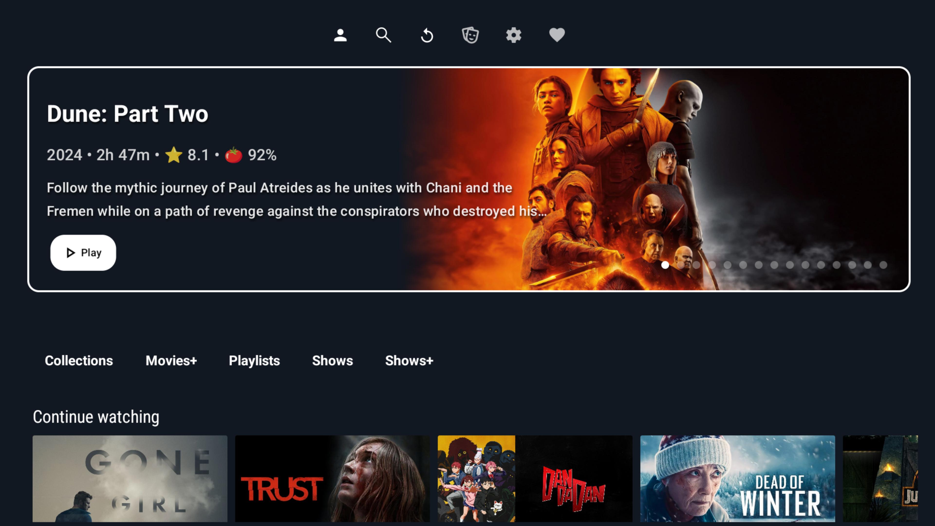 DUNE is a modified version of the official Jellyfin Android TV client with enhanced UI/UX and additional customization options.