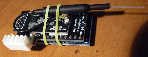 This project helps to turn cheap RC radio transmitters into multi protocol devices. The idea is to remove embedded controller from an RC transmitter and to use Arduino + NRF24 instead of it. Analog pins A0..A7 of Arduino used to measure voltage on RC stick resistors and buttons. I used DROMIDA Q100 RC transmitter as a base, it already has NRF24 soldered, but it is possible to use almost any RC control with or without NRF24 on it.