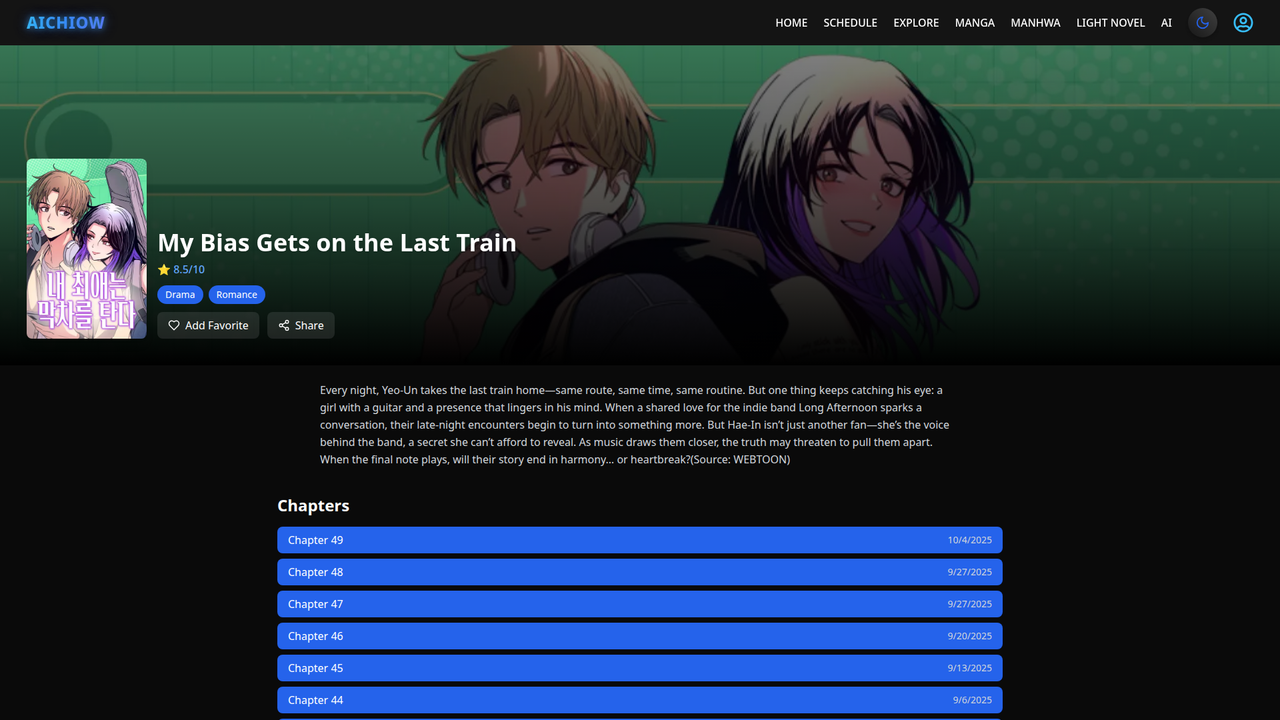 Discover anime, manga, manhwa, and light novels on Aichiow modern design, fast navigation, and rich details in one place.