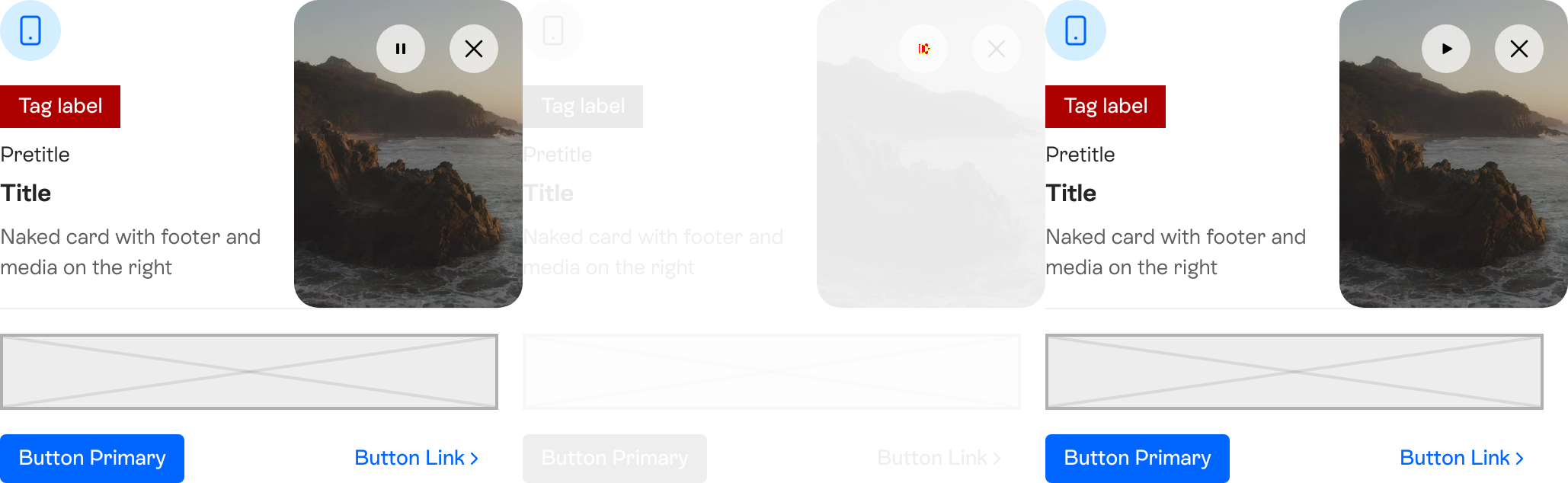 Introduce new screenshot tests for MediaCard, CoverCard, and NakedCard with videoAutoPlay set to false. These tests ensure the correct rendering of cards in a paused state, verifying the visual output after a video load delay.