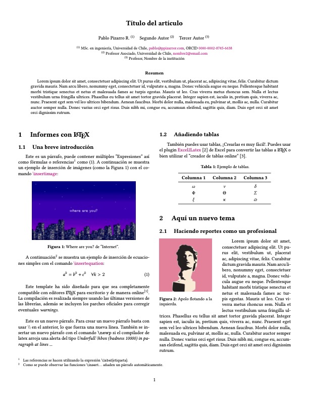 Template-Articulo About Template para crear artículos en LaTeX Manual de uso El manual de uso se encuentra disponible en su página web: Template-Informe Licencia Este proyecto está licenciado bajo la licencia MIT [https://opensource.org/licenses/MIT] Autor Pablo Pizarro R. | 2021 - 2025