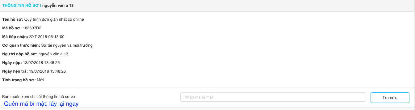Có thể lấy lại mã bí mật của hồ sơ -> Gửi lại qua email, SMS