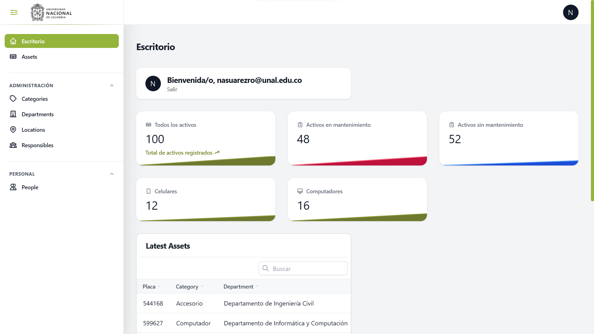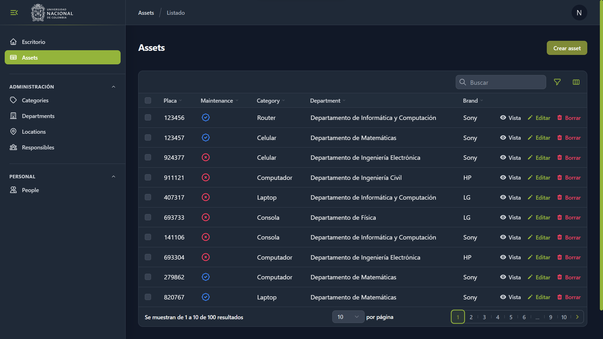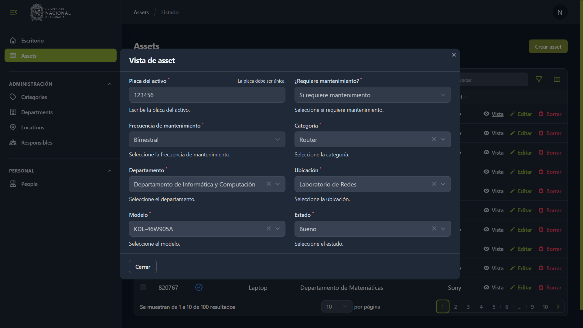 Asi se ve la interfaz de administrador para ver detalles de activos.