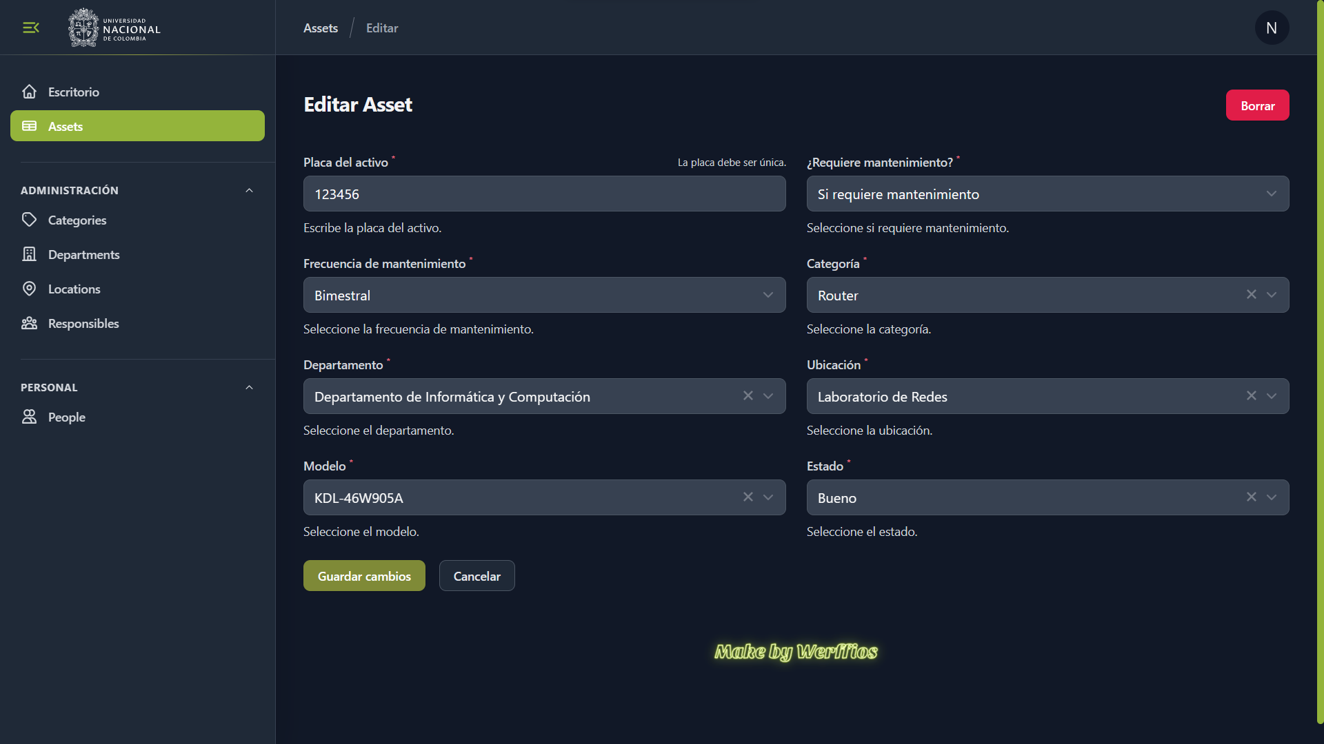 Sistema de inventario para la gestión de activos, proyecto desarrollado como requisito para la asignatura de Ingeniería de Software II.