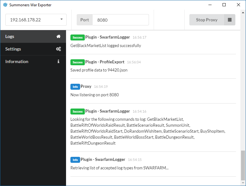 This tool will parse intercepted data from Summoner's War and extract information on the monsters and runes of the user. It works just like SWProxy and the focus was to write a smooth proxy, that runs fast and to fix common glitches with SWProxy (SW starting problems, errors on event pages etc.). You can even turn on Summoners War Exporter for normal surfing, because it doesnt really influence other pages much.