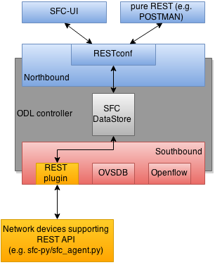 原本的sfc-py是和OpenDayLight的南向API连接的,从OpenDayLight中获取服务链的配置信息来生成服务链。