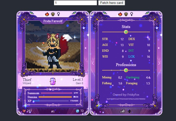 DFK Hero Viewer is a React implementation for showing hero cards(NFTs) from the successful blockchain game DefiKingdom.