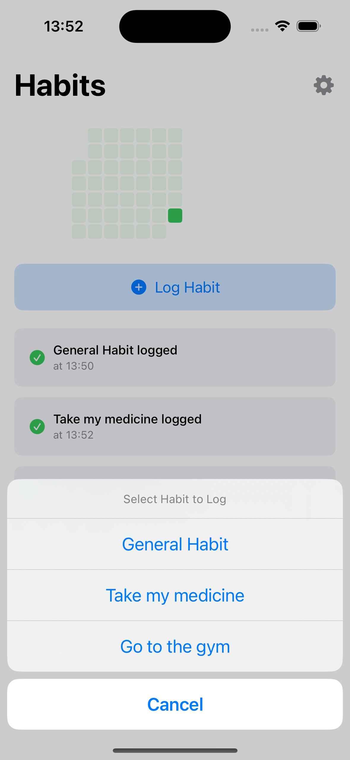 - Instant logging - single tap to log when you have one habit, picker for multiple