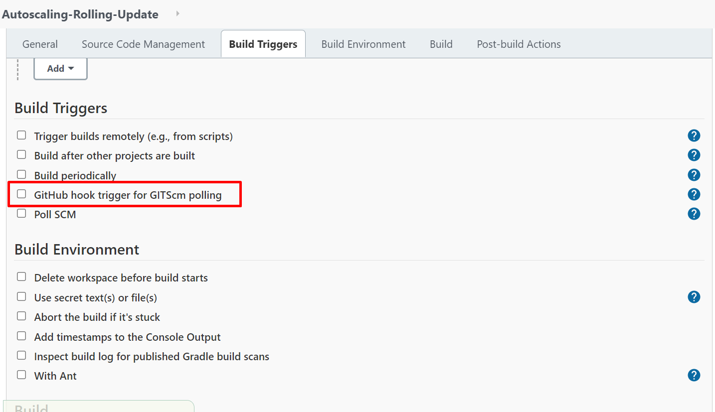 Once added the webhook in the GitHub, updated the Jenkins configuration as such to trigger when GitHub pushes.