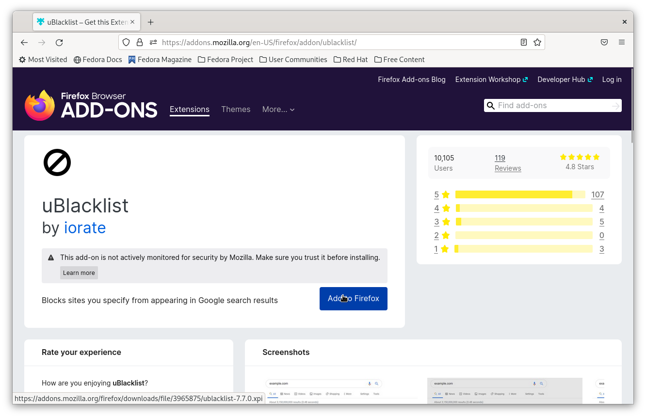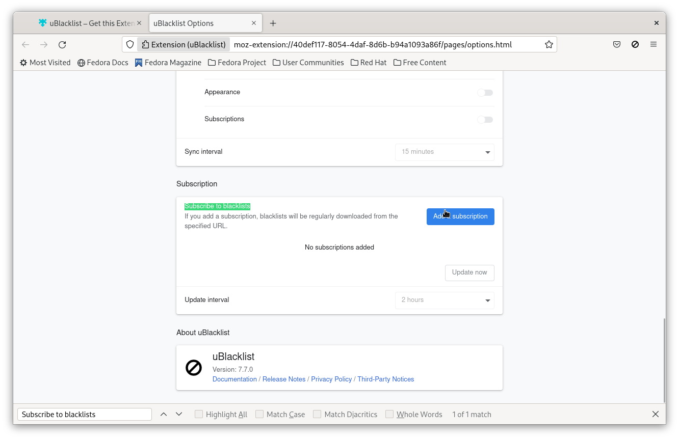 2. uBlacklist yapılandırma sayfasını açın ve ardından "Add a subscription"a tıklayın.
