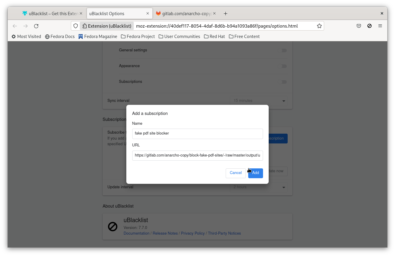 | fake pdf site blocker | https://gitlab.com/anarcho-copy/block-fake-pdf-sites/-/raw/master/output/uBlacklist.txt |