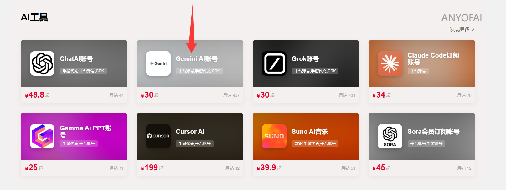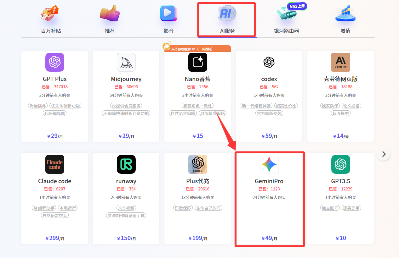 接下来我们会为大家介绍国内三个最常用、最专业的Gemini Pro账号购买平台,大家可以根据自身需求选择最适合的Gemini Pro购买渠道。