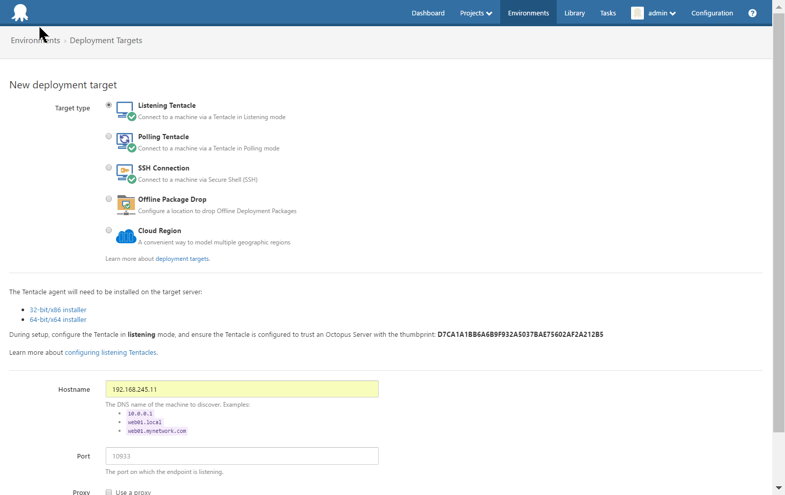 - This will provide us with a server thumbprint that we will use on our Tentacle so be sure to document that