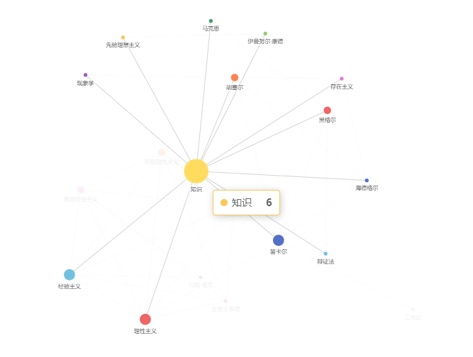 在关键词索引之上,方寸笔迹以笔记本作为逻辑边界,形成笔记本内关键词的图谱关系。只要在笔记中存在多个关键词,就会自动创建关键词的关联,最终会以具象化可视的知识图谱的形式呈现出来。