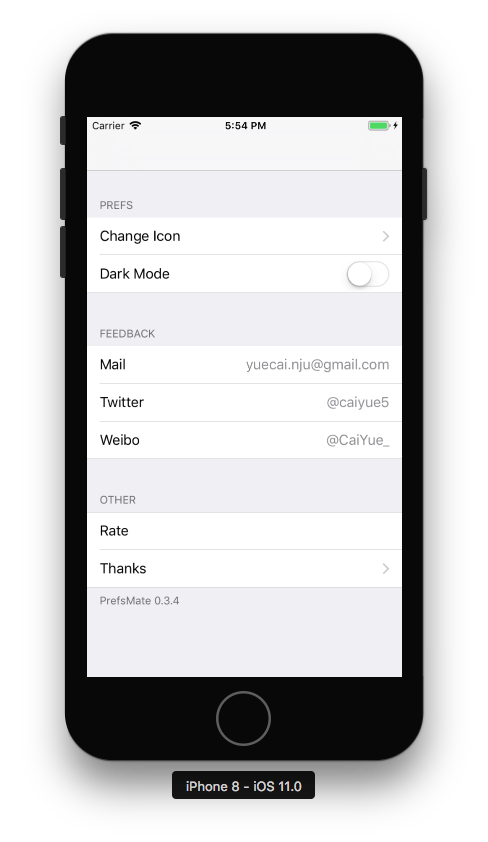 PrefsMate provide an elegant way to generate UITableView using a property list file(plist file, in short). Also, you can configure actions with its support. Thanks to the Codable protocol, it makes the code perfect clean.