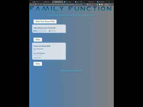 Mod 4 Project for the Flatiron School. Family function is a SPA built on Rails(API), JS, HTML, and CSS. Family Function is designed to act as a virtual family chores list. The app gives households the ability to view the status of all chores(incomplete, complete), as well as the ability to complete,reset, or delete chores.