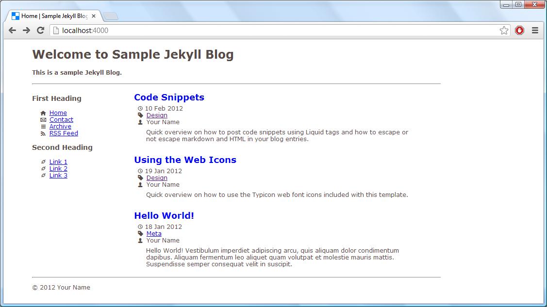 Note: when you run the built-in Jekyll server you will need to access your site by going to http://localhost:4000/blog.